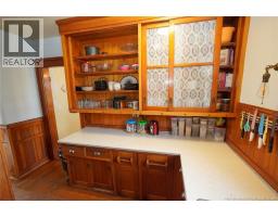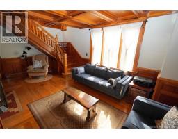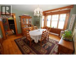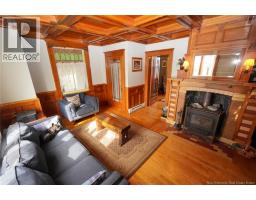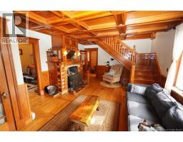GRAND MANAN ISLAND UPDATED HISTORIC GEM IN SEAL COVE! Built in 1938, this distinguished island home showcases the craftsmanship and elegance of its era, with impressive proportions, high ceilings, and quality finishes throughout. From ornate hardwood trim and stained-glass accents to gleaming hardwood floors, every detail reflects timeless character. The two-room kitchen retains its original hardwood cabinetry, complemented by a formal dining room, two entry halls, and a grand living room featuring large windows, a coffered ceiling, and a stunning fireplace with an integrated updated wood stove. A cozy library/media room, wide quarter-turn staircase, and secondary rear staircase add to the homes charm. Upstairs are four spacious bedrooms and a full bathroom. The full walk-out basement provides access to updated systems, ample storage, and an additional wood stove. Outside, enjoy nearly an acre of well-kept gardens that extend to Seal Cove Crick, a tidal creek leading to one of the islands most beautiful sand beaches. The waterfront area currently has the Seller's camper on site and a firepit setup for guests. A detached 28x22 ft garage with a 10x20 ft rear extension offers abundant storage. Set in the heart of historic Seal Cove, youll find the golf course, Tides Inn Restaurant, and Grand Manan Brewing Co. just a short stroll away. Dont miss this rare opportunity to own an updated historic time capsule in one of Grand Manans most picturesque coastal communities! (id:27749)